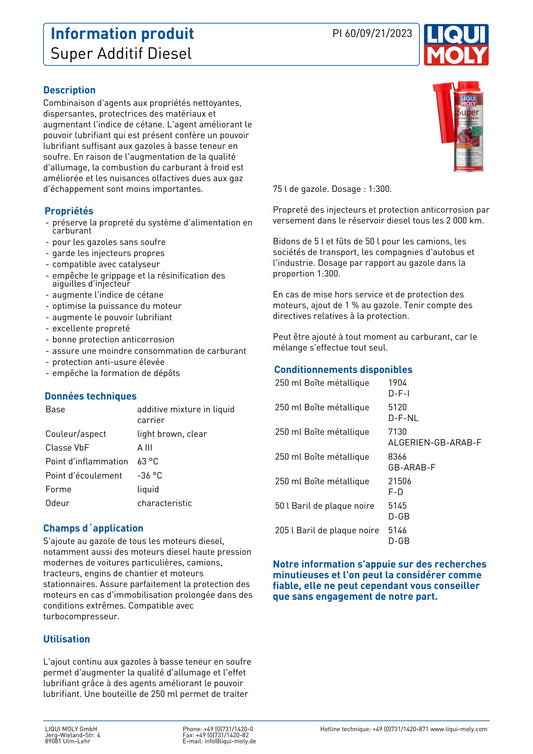 013 - LIQUI MOLY Super Additif Diesel 250 ml SKU: 5120